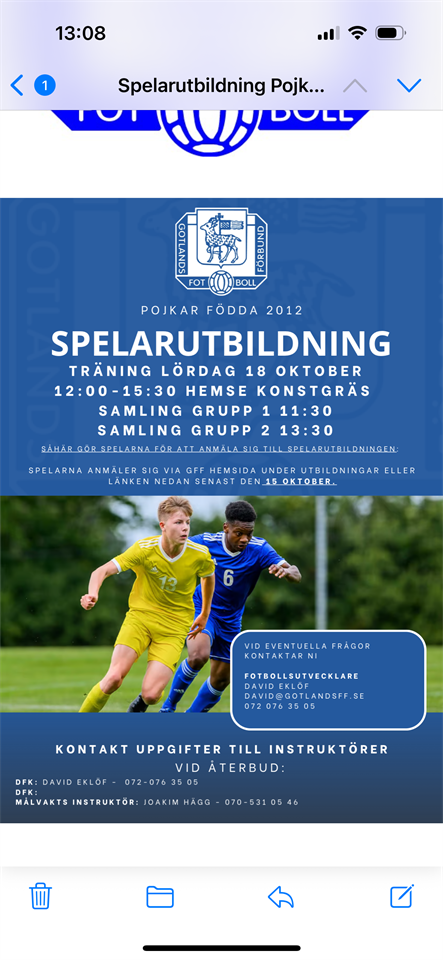 Hej Nu är anmälan öppen för nästa spelarutbildning. I vanlig ordning anmäler man sig själv. Länk till anmälan här P-14 Fotboll 6 okt 2025 0kommentarer