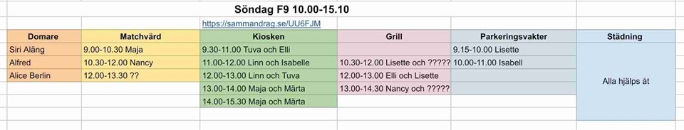 Hej! Vi har några luckor i arbetsschemat som måste tillsättas. Meddela mig om du kan hjälpa till!