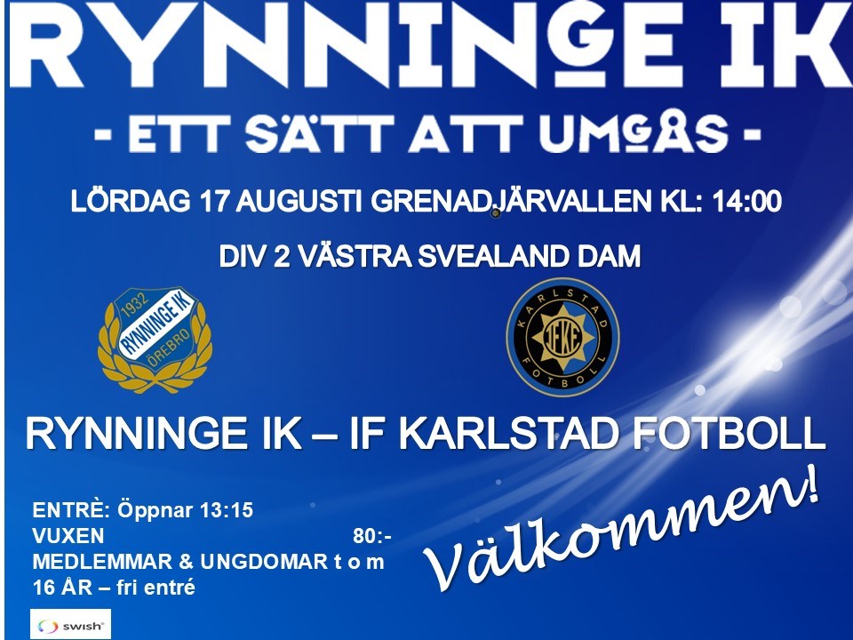 Hej, Ny hemmamatch för damerna! Lördag 17 augusti klockan 14:00 mot IF Karlstad Fotboll. Välkomna till trivsamma och gemytliga Grenadjärvallen! Damlaget 14 aug 2024