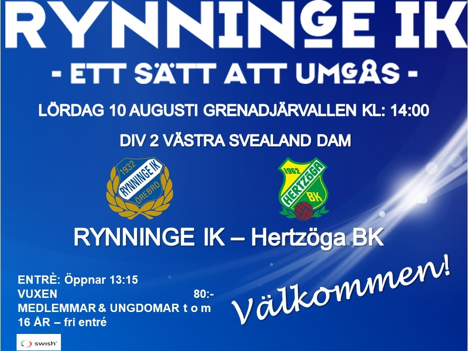Lördagen 10 augusti klockan 14:oo spelar damlaget hemma mot Hertzöga BK. Matchen spelas på trivsamma och gemytliga Grenadjärvallen. Välkomna! Damlaget 8 aug 2024