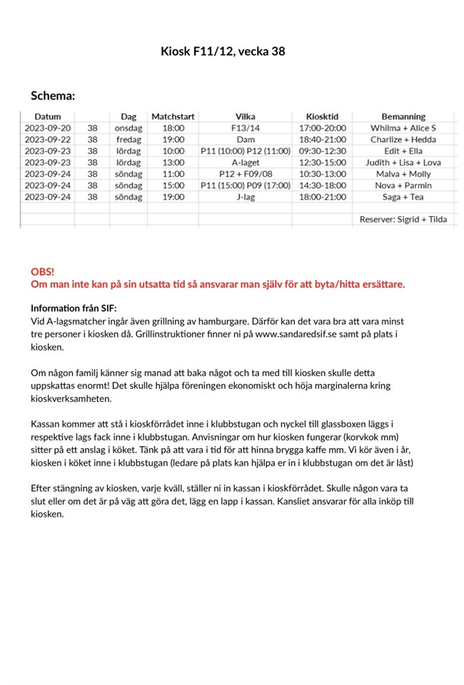 Här kommer kioskschemat vecka 38.