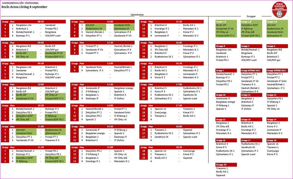 Hej! Vi ses kl 12 på Borås Arena ombytta. Matchtröjorna får vi där. Tänk på att det kan vara svårt med parkering. Ta gärna med någon frukt att ta mellan matcherna. Gå nu och lägg er i tid i kväll fotbollskillar😁 /Ledarna