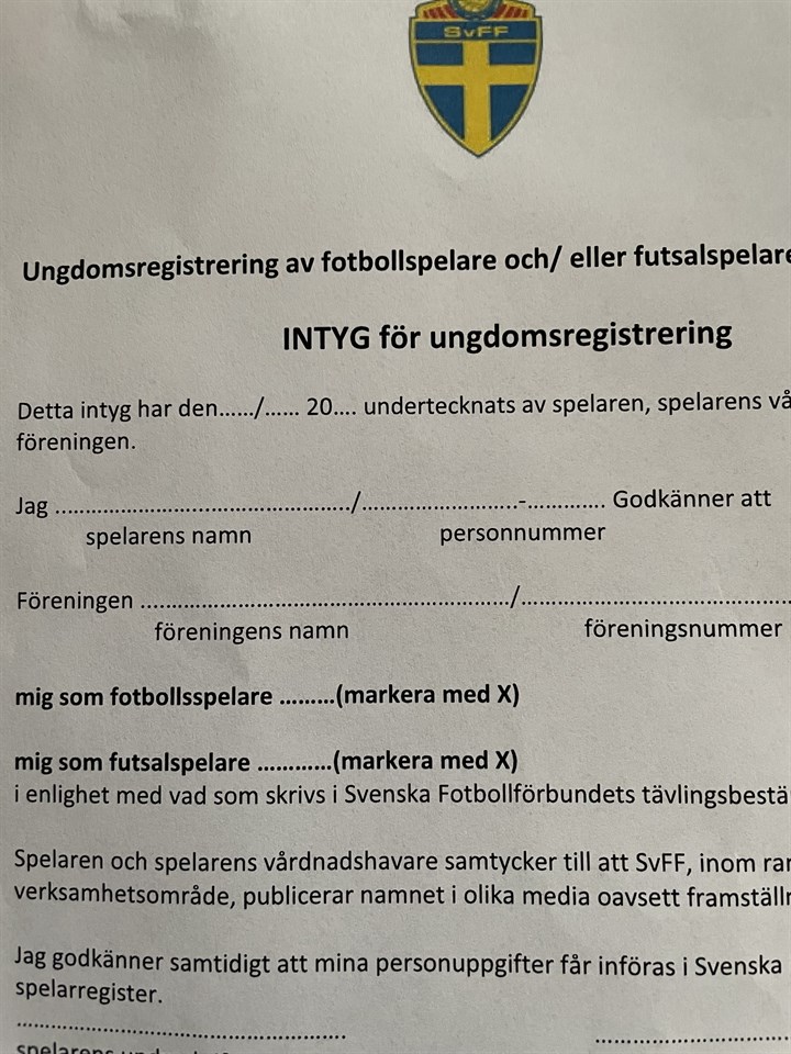 Idag har spelarna fått med sig en blankett hem. Från och med denna säsong ska alla registreras hos Svenska Fotbollförbundet. Eftersom vi vet att papper snabbt kan få vingar skickar vi ut info här med uppmaning att fylla i blanketten och återlämna vid nästa träningstillfälle. Har ditt barn inte tränat idag tar vi med till ytterligare träningar. Vi hoppas att alla killar är fortsatt peppade på att spela fotboll! Inför säsongen finns nu även en kallelse att besvara om man vill fortsätta eller inte, detta då vi vill få en uppfattning av hur stor truppen kommer att vara i vår. Allt gott! /Tränarna P12 5 feb 2022 0kommentarer