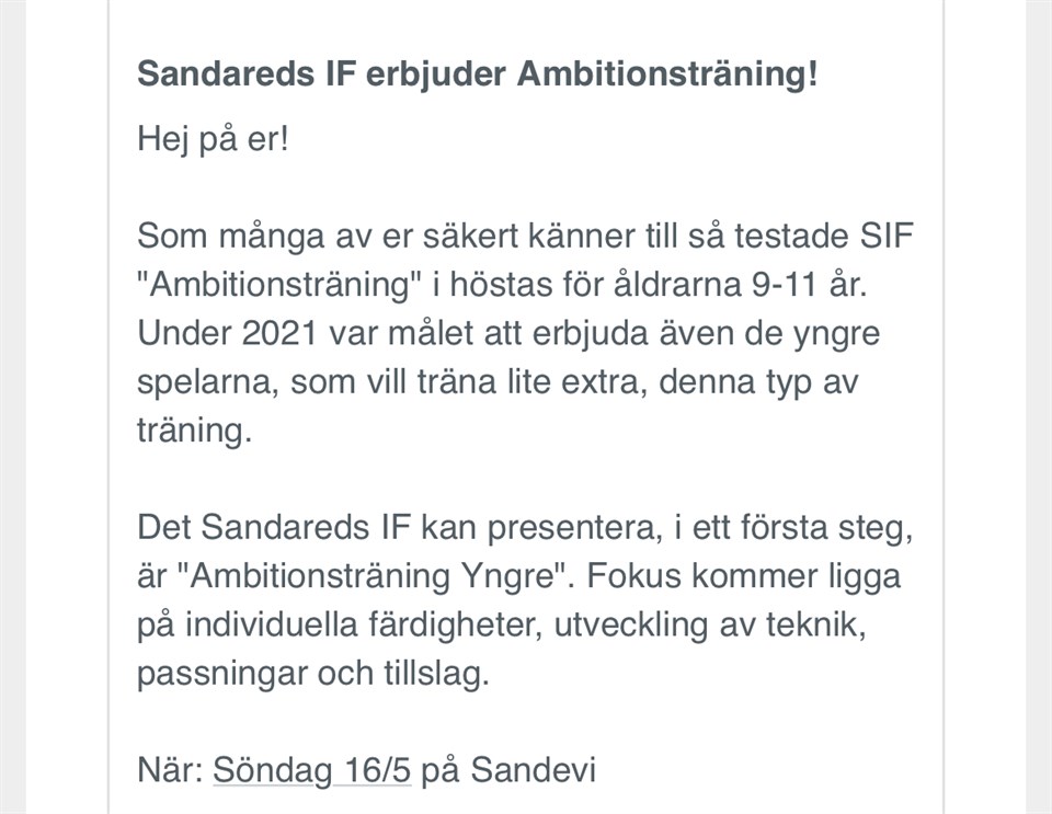 Hej! Eftersom vi inte har någon träning på påskafton, erbjuder vi träning på skärtorsdagen. 16.00-17.30 på Sandevi, separat kallelse har gått ut. Önskar er alla en glad påsk! 🐣 /Tränarna P12 29 mar 2021 0kommentarer