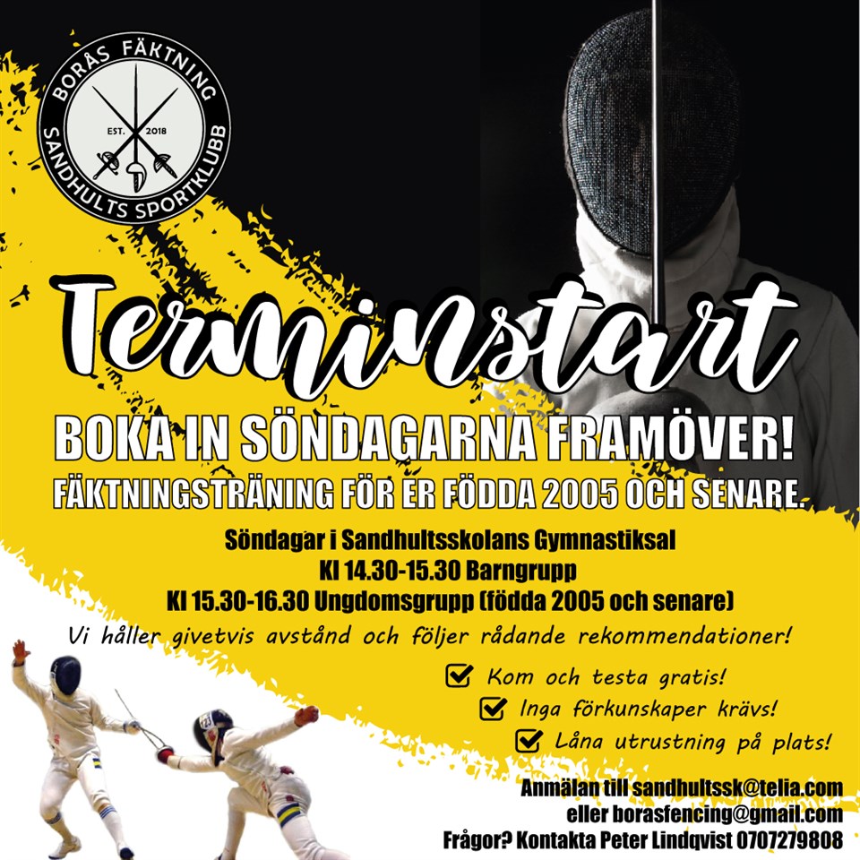 Ni har väl inte missat att fäktningsträningen kört igång? Välkomna alla barn och ungdomar födda 2005 och senare! Sandhults SK 21 feb 2021 0kommentarer