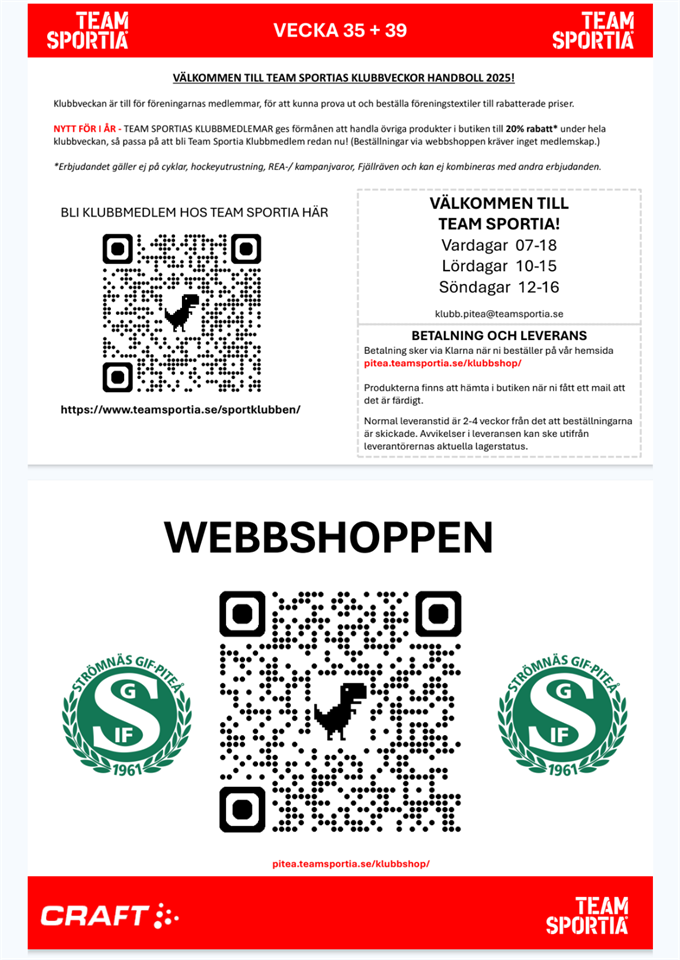 Tjena! Vecka 35 och 39 är det klubbveckor på Team Sportia där ni vid behov kan köpa föreningskläder och ta del av andra erbjudanden. Ni kan också shoppa online via SGIF HK Onlineshop om ni inte vill besöka butiken fysiskt. F 14 (2012) 23 aug 2025 0kommentarer