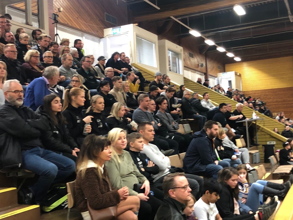 Det stora publiken bjöds på fri entre av våra generösa sponsorer. Även spelarna på plan bjöd upp till en häftig innebandymatch som var spännande och välspelad. Lagen växlade i ledning och spelet böljade fram och tillbaka. Till slut stod det 6-6 på resultattavlan och allt skulle avgöras i sudden. Trots att gästerna från Värmland spelade med två man mer kunde 89ers freda målet och skapa tryck mot slutet genom att ta ut målvakten. En tilltrasslad situation i slutsekunden ledde fram till straff för hemmalaget som tyvärr missades. Den rafflande matchen slutade 6-6. En av våra bättre matcher Vi gör inte en av våra bättre säsonger men ikväll var vi riktigt bra i den andra och tredje perioden. Hagfors var i ledning med 3-1 men vi jobbade oss målmedvetet tillbaka och kunde vända fram till ledning 5-3. Vi spelade med energi och fart. Trots ledning med 6-4 med bara minuter kvar kunde gästerna ta matchen till sudden efter en turlig kvittering. Storspelande, Tobias Andersson, i målet räddade flera farliga lägen men på kvitteringen hade han otur när bollen gick i nät via axeln. Spelarna skall vara stolta över sin insats och fortsätter vi spela så här kommer vi börja rada upp segrar. Målskyttar ikväll var Victor Johansson 2, Linus Svahn, Henrik Areskoug, Tony Brome och Sebastian Ottosson ett vardera. Totalt räknade vi in 577 personer på tre-kronorsmatcherna denna söndag. En bra siffra! Stort tack till våra sponsorer.