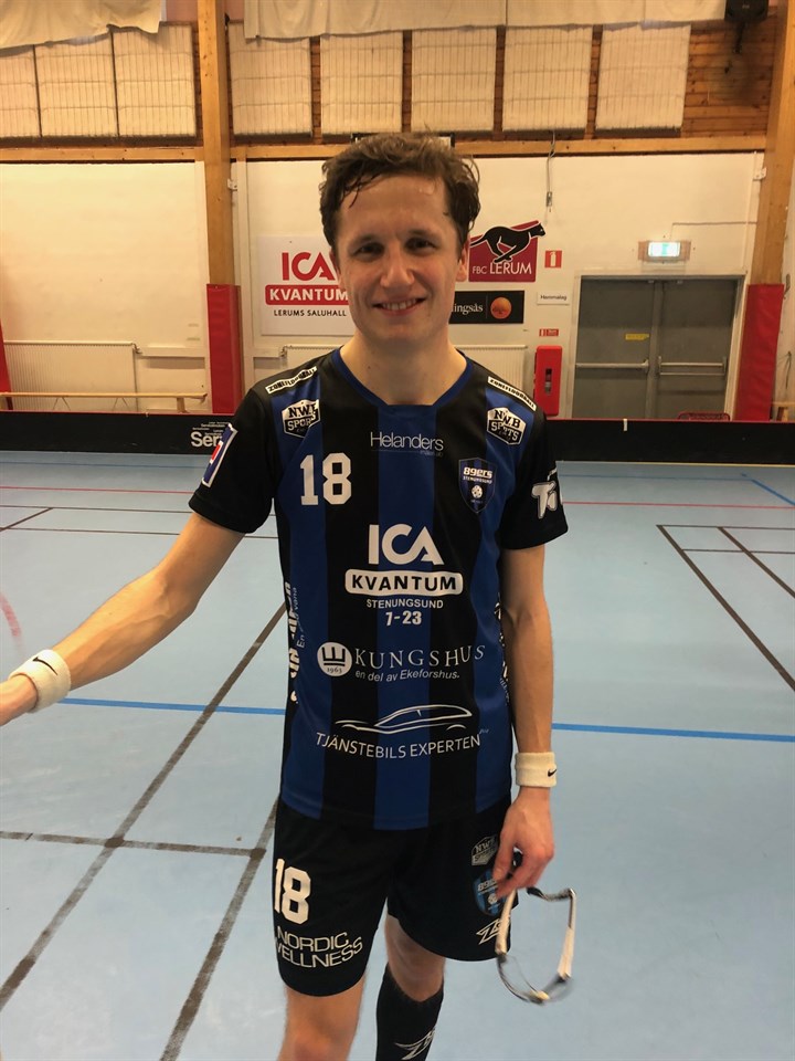 På sjunde försöket lyckades äntligen 89ers vinna i sudden när laget besegrade Floda IBK på bortaplan med 6-5. Segermålet gjordes av Sebastian Ottosson som hittade krysset. Hur snyggt som helst! Tränaren, Ludvig Eriksson var nöjd med lagets insats. - Ja vi gör en bra match och skapar många chanser och borde kanske vunnit under ordinarie tid analyserar Ludde. Alla krigar på och jag vill ge ett extra plus till Tobbe i målet och Kevin Nilsson. Även Sebbe förtjänar beröm för sitt galna drömmål i sudden avslutar Ludde. 89ers kan skapa lite nerv i jakten på play off om laget besegrar Kumla IBK hemma nästa lördag. Vi ger oss aldrig och skall naturligtvis ta sista chansen att hänga på play off tåget. Alla till Stenungsund Arena! Målskyttar mot Floda var: Kevin Nilsson 2, Henrik Areskoug, Andre Lundgren, Linus Svahn och Sebastian Ottosson. (På bilden ser ni matchens lirare, Kevin Nilsson)