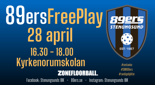 89ers FreePlay 28 april 16.30 - 18.00 i Kyrkenorumskolans idrottshall! Kom och lira innebandy. Öppen för alla medlemmar i Stenungsunds Innebandyklubb! #SIBK89ers #randigahjältar #omtanke #stenungsundsibk