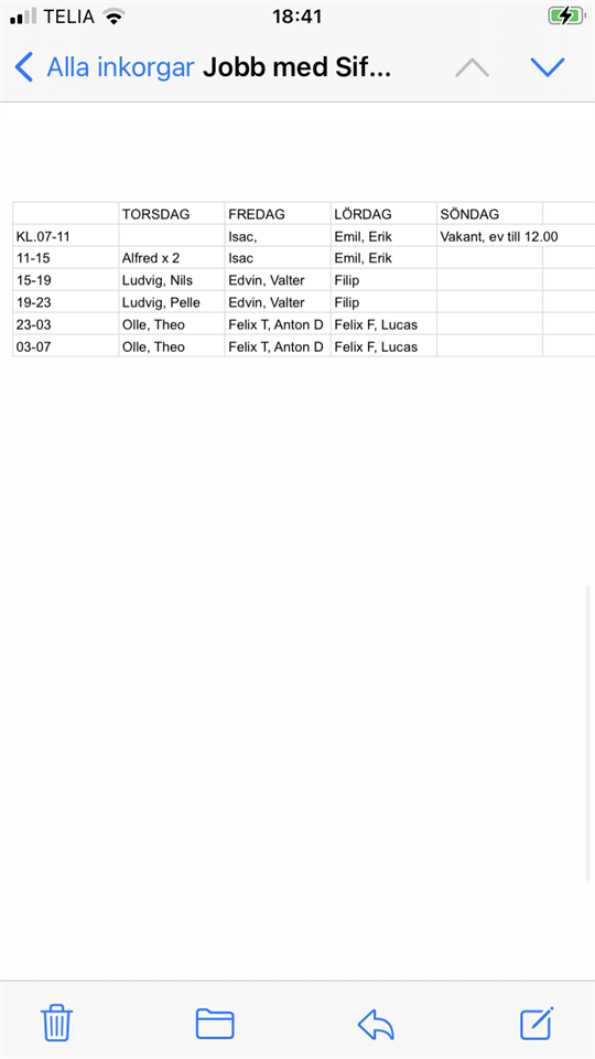Hej på er! Här kommer jobblistan inför helgen 26-29 maj. Vi kommer sitta på Västra skolan. Har försökt göra den efter diverse önskemål. Skulle det ändå inte passa så försök byta med varandra. Sen finns det några pass som inte är fullt bemannade (fredag och söndag fm samt lördag em/kväll) så känner man att man vill/kan ta de oxå så är det bara att höra av sig. Meddela gärna om det blir några förändringar. 09ers 19 maj 2022 0kommentarer