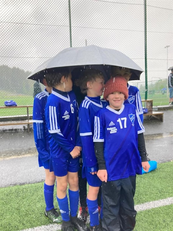 Denna dag var en alldeles särskild dag. SMHI hade gett en prognos som pricksäkert utlovade regn lagom till matchstart. Killarna var förberedda med regnkläder att dra på sig när de inte spelade. Tretton hjältar i P11 lät inget hindra dem från att spela fotboll och ha kul tillsammans.