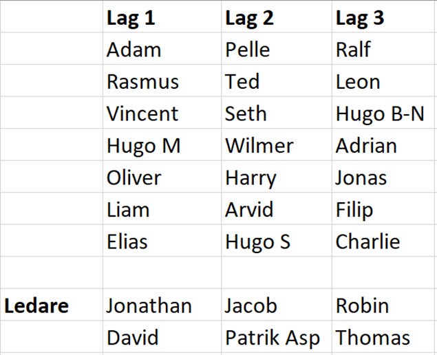 • Laguppställning för sammandrag i Gävle 13/1