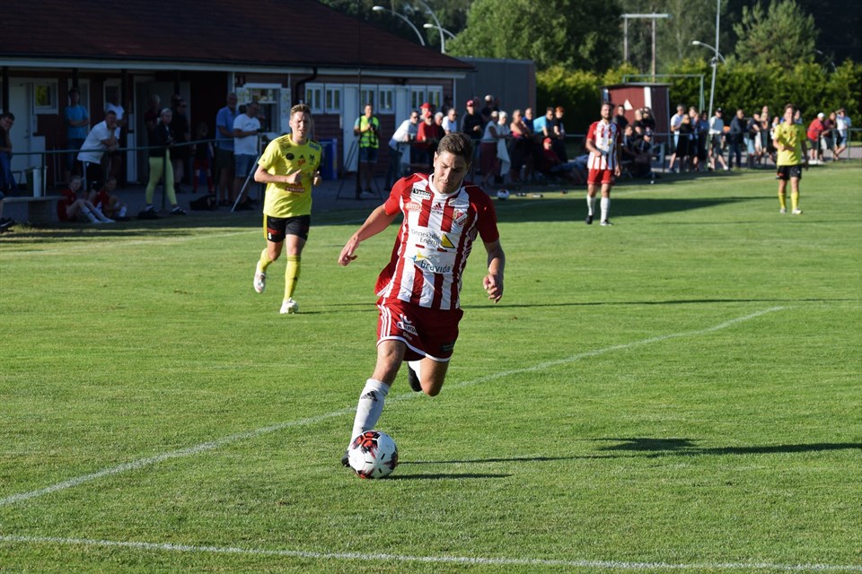 Vi avslutar tyvärr vårsäsongen på sämsta tänkbara sätt när vi åker på en sur 3-0 förlust borta i Nossebro Första halvlek Vi startar matchen bra och skapar genast några bra lägen. Emil kommer förbi på sin kant och frispelar Amel som från målområdet ska trycka in bollen men en finfin fotparad från Nossebros duktiga målvakt förhindrar 1-0 efter bara 5 minuter. Vi fortsätter ha bra koll på grejerna och är spelförande men där Nossebro ständigt hotar i sitt omställningsspel. Efter ca 15 minuter så går vi ner lite i tempo och felpassen ökar vesäntligt. Detta utnyttjas självklart av Nossebro som bjuds in i matchen. Bättre blir det inte efter ca 20 minuter då Nossebro tar ledningen efter en hörna där vi 10sek tidigare haft en hörna på offensiv planhalva. Målet får dessvärre undertecknad helt ta på sig då han glömt att han kan hoppa. Direkt efter detta går tyvärr kapten Jespers baksida och vi tvingas till mittbacksbyte. Vi repar dock snabbt mod och skapar en kavalkad av målchanser där bla. Lukas får en frispelning precis på straffpunkt men bollen går precis över ribban och där Amel efter hörna får till ett skott som räddas på mållinjen. Vi är dock, tyvärr, inte klara med våra egna misstag i matchen. Efter ytterliggare en fast situation på offensiv planhava och ytterliggare en kontring på oss får Nossebro frispark utanför straffområdet. Inläggsfrisparken är vi först på, dock lyckas vi nicka hål i luften, det blir flipperspel i straffområdet och 2-0 är ett faktum. Efter 2-0 har vi ytterliggare något läge att leta oss in i matchen men skärpan framför mål lyser tyvärr med sin frånvaro. Andra halvlek I paus tvingas vi tyvärr till nästa mittbacksbyte då även Jojjes baksida ger vika. Vi gör även ett par andra byten där Edgar och Axel kommer in för att ge lite mer offensiv balans i laget. Vi börjar andra halvlek lite trevande då det blivit många förändringar men ganska snart kommer vi igång och försöker sätta tryck emot Nossebro som dock gör det svårt för oss. Vi lyckas dock komma till ett riktigt bra läge efter att firma Lukas, Axel och Edgar haft fina kombinationer på vänsterkanten. Efter lite väggspel befinner sig tillslut Lukas i straffområdet och lägger bollen emot bortre stolen där nyinbytte Ladde bara är cm från att raka in bollen i öppet mål. Nossebro är fortsatt farliga i sina omställningar och det är även så matchen avgörs. Vi tappar boll utanför deras straffområde och några sekunder senare så ligger bollen i nätmaskorna bakom undertecknad efter ett finfint kontringsmål. 3-0 med 25 minuter kvar och matchen är tämligen avgjord. Efter detta går matchen ner lite i tempo. Båda lagen skapar chanser men ingen lyckas förvalta någon av dessa. Efter 90 minuter blåser den för dagen fläckfria domaren av matchen och Nossebro kan gå av som segrare. Summa summarum Knepig match där vi i första halvlek skapar betdligt mer än våra motständare men där Nossebro är mycket hetare i de båda straffområdena. Blir även rubbad matchbild när vi tvingas byta ut våra båda mittbackar även fast de som ersätter gör ett fullgott arbete. Andra halvlek försöker vi skapa nerv men Nossebro kan tämligen kontrollerat spela av matchen. Noterbart är att vi under stora delar av andra halvlek spelar med en snittålder (exklusive pensionären i mål) på 19,5 år på planen så framtiden ser ljus ut :) Nu tar vi en måads uppehåll innan vi drar igång med träningar i början av augusti. TREVLIG SOMMAR
