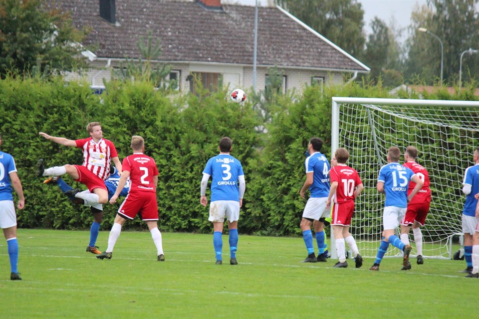 Seriefinal med 4 omgångar kvar efter denna match fanns att bevittna på Silbohofs gröna matta under gårdagen. Efter ett sent avgörande lyckades vi rättvist knipa alla 3 poäng. Målen gjordes av Emil Å och Ladde (med hjälp av försvarare). Första halvlek Värsås, som inför matchen låg 3 poäng före oss, kom till spel med en 3-5-2 uppställning där man hela tiden sökte bollen emot sina centrala mittfältare. Detta lyckades vi dock styra bort gång på gång och de blev istället tvingade att så den längre emot deras forwards där vi enkelt kunde ta hand om bollen. Vi börjar bra, kommer förbi ett par gånger på kanten och bla. Handske har ett helt fritt läge efter att Haiber snurrat sig ned på kortlinjen och spelar bollen snett inåt bakåt, tyvärr ingen ren träff på avslutet. Allt som halvleken går så jämnar spelet ut sig, Värsås får rulla lite mer boll utan att skapa mer än något långskott utifrån. Vi har en 100%ig chans till innan paus. Det är Jojje som på en perfekt hörna av Lind sätter pannan på bollen, förbi målvakten men tyvärr inte försvararen på mållinjen som lyckas få bort bollen. Andra halvlek Det känns som att vi har ett litet övertag i första halvlek, åtminstone sett till målschanser. Vi pratar om att gå ut och köra skiten ur dem i andra. Det är precis vad vi gör. Vi tar tag i taktpinnen direkt och kan med bra vändningsspel komma till mycket inlägg vilket resulterar i en radda hörnor. I efterdyningarna av en hörna snappar VC upp bollen och skickar in den stenhårt längs med backen, Haiber möter perfekt och skarvchippar bollen, i ribban! Ytterst nära 1-0 där. Bara minutrerna efter så slås en perfekt djupledsboll till Haiber som kommer fri med målvakt, dock lite ur vinkel. Skottet är bra, tippningen i stolpen är ännu bättre. 1-0 skall dock välförtjänt komma i den 67 minuten. Ytterliggare en hörna där bollen tillslut kommer ut till Emil Å utanför straffområdet. Emil tar emot, flyttar i sidled och dammar in 1-0 i vänster stolprot! Värsås, som inte haft en tillstymmelse till målchans, har extremt svårt att hitta igenom vårt kompakta försvar och det känns väldigt stabilt efter målet. 10 minuter, en onödig duell i krysset på straffområdet och ett urtjusigt svandyk senare så har helt plötsligt Värsås fått straff. 1-1 kommer också där, väldigt surt. Vi rycker dock upp oss igen, gör ett gäng byten där firma Lukas/Amel/Ladde ger ny energi till laget. Vi fortsätter att pumpa på och inläggen viner vid Värsås straffområde som kommer allt längre ned emot sin egen målvakt. Vi har ett jätteläge i matchminut 82 där Talic slår ett perfekt inlägg till VC som nickar ner den i gröten och bollen dansar på mållinjen, därefter får VC på en praktträff med en bicicleta efter att Värsås rensat undan bollen men målvakten gör en kalasräddning. Med ca 5 minuter kvar så börjar vår forcering mattas av lite och det känns som att det skall bli 2 tappade poäng. DÅ, med 30 sek kvar av matchen, vinner Callsn en jätteduell på mitten, bollen fram till Oscar som lägger en perfekt macka i djupet emot Haiber. Haiber tar emot vänder upp och hittar med ett stenhårt inlägg framåtrusande Ladde perfekt på huvudet. Ladde skarvar och via en försvarare så går bollen i MÅL. Efter det hinner Värsås med ett anfall innan domaren sätter pipan i munnen. Summa sumarum Hyfsat jämn första halvlek där vi dock skapar målschanser tillskillnad från Värsås. Andra går vi ut och dominerar. Återigen väldigt stabilt bakåt där Värsås har en, enligt mitt tycke, feldömd straff som enda 100% målchans i matchen. Go moral att kunna vända tillbaka matchen till vår fördel efter det också. Nästa match för A-laget är nästa lördag då vi gästar Korsberga! Syns då!