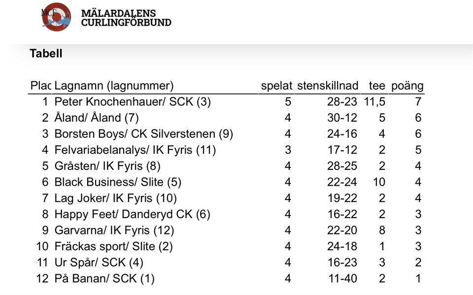 | 4. | (4) | Västerås IK Ungdom Team 14 (U 12) |