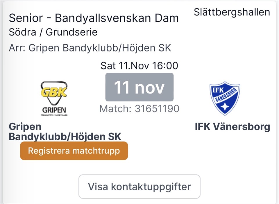 Den 11 november är det dags för seriepremiären, vår första match i Damallsvenskan! Vi räknar med en stor publik som hejar på våra tjejer i denna derby mot Vänersborg. Ta med släkt och vänner till Trollhättan! Gripen ordnar ett litet arrangemang i GripBar och säljer lättare tilltugg, alkoholhaltiga och alkoholfria drycker, och hoppas få till lite underhållning också. Iom att vi serverar öl och vin behöver vi ha samtliga besökares namn så de kan bockas av. Har med tillstånd att göra. Vi skickar en speciell kallelse 'Publik till premiären' där ni kan svara vem som kommer. Välkomna! Ledarna