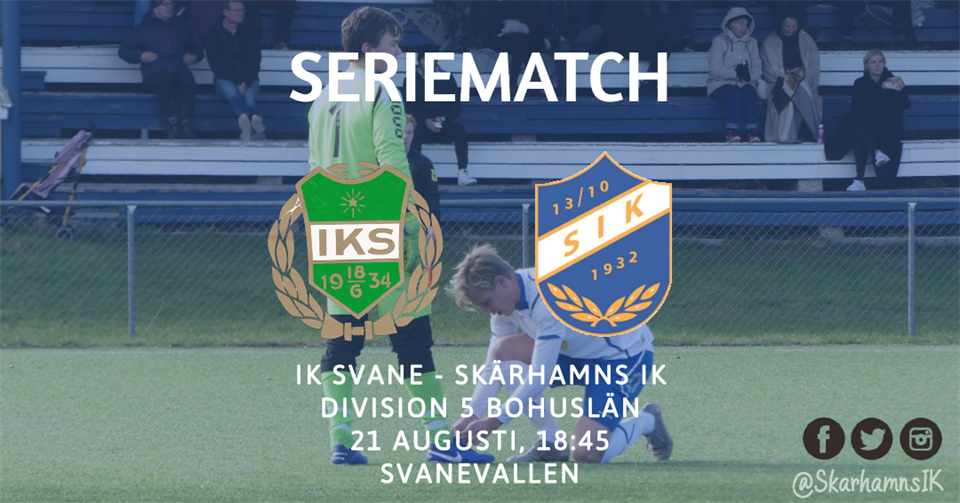 Tredje seriematchen i år. Det blir även tredje matchen på sju dagar. Ett tätt matchande ska rundas av med en tuff bortamatch i vackra Smögen. Smögen har tagit fyra utav sex möjliga poäng. De vann premiären hemma mot IFK Lane för att sedan kryssa i sitt lilla derby mot Lysekils AIK. Det är ett duktigt och ungt lag. Johan Hansson, förra årets skyttekung i Division 5 Bohuslän spelar där, förra året gjorde han 28 mål i serien, varav 7 av dessa faktiskt kom mot oss i de två matcher vi möttes. Otroligt facit kan man väl säga. Vi vann senast med hela 8-0. Det var en match där det borde blivit än mer mål för oss men så är det ibland. Isac Ohlsson gjorde sex mål och är i god form kan man säga. I övrigt är vi i princip skadefria, lite små skavanker finns givetvis. Adam Brändén kommer att få chansen i mål denna match, dock får Hugo Wolfbrandt hoppa över denna match igen pga problem med knät. Alla matcher är viktiga, men denna bortamatchen kan vara en av de svåraste i år. Förra året blev det förlust med 5-3 efter en marddrömstart. Det är något vi inte vill uppleva igen. Matchen sparkas igång 15:00 och vi säger det återigen; Ingen publik är tillåten i denna match. Ni får följa matchen via vår rapportering på Forza Football eller så kan ni se den via Smögens livesändning i appen "Min fotboll". Det är en app som är gratis, och du behöver endast registrera dig med ditt mobilnummer för att komma igång. Heja Skärhamn. Matchtruppen: Adam Brändén Jakob Thorén Carl Thorén Peter Fransson Arvid Henriksson Alfred Hansson Hampus Wallin Alex Gustafsson Markus Johansson Emil Larsson Benjamin Berntsson Andreas Bengtsson Lukas Andersson Niklas Andersson Charlie Wolfbrandt Isac Ohlsson