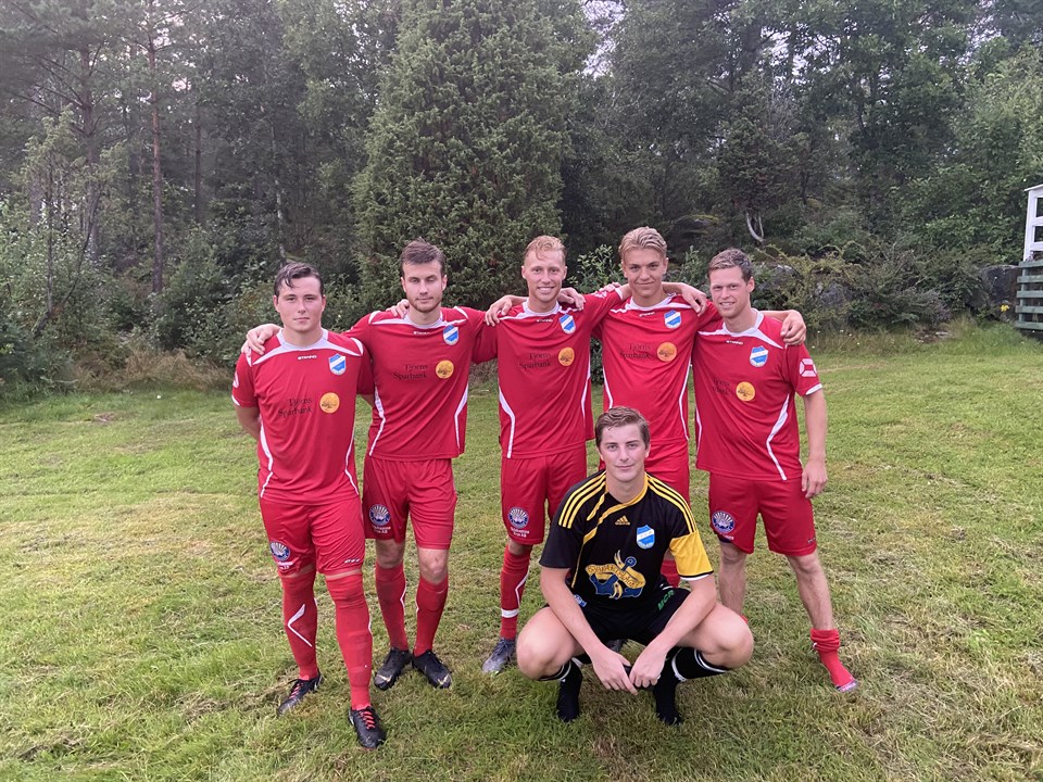 Dagens match slutar med 7-0. Vi gör jobbet och håller nollan. På bilden ser ni tvåmålsskyttarna Markus Johansson och Isac Ohlsson och Hampus Wallin, Josef Borggren, Emil Larsson som gjorde varsitt mål samt Adam Brändén som håller nollan. Nästa match spelas hemma på fredag 19:00 mot Svarteborg FK.