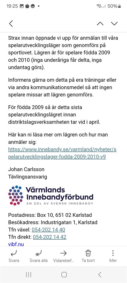 Hej! Detta mail går ut till ledare i de röda serierna. Om mailet inte berör dig så kan du bortse ifrån informationen. Vecka 9 genomför vi spelarutvecklingsläger för spelare födda 2009 och 2010. Påminn gärna era spelare i dessa åldrar att anmäla sig så snabbt dom kan om dom tänkt delta. Anmälan stänger 7 februari. Länk till information samt anmälan här: https://innebandy.se/varmland/nyheter/spelarutvecklingslager-fodda-2009-2010-v9 Hör av er till mig vid frågor på johan.liback@innebandy.se Tack! F-09/10 22 jan 0kommentarer
