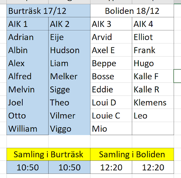 Matcher i Burträsk och Boliden, tror jag fått in alla önskemål. Lagen som vanligt lite preliminära.