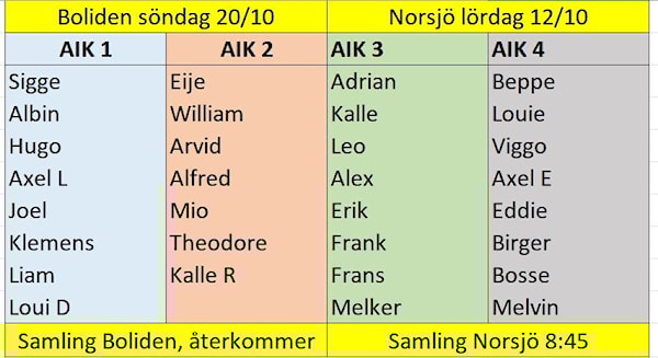Nu drar matcherna igång. I lag 1 & 2 är det tre målvakter, där kommer målvakterna dela på matcherna för båda lagen, dvs de kommer att stå någon match i bägge lagen. Spelschemat för Bolidenmatcherna är ej klart, återkommer med samlingstid.