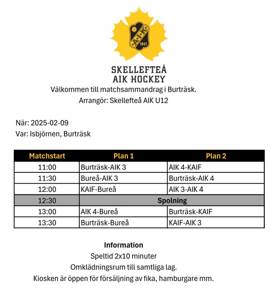 Här är matcherna i Skellefteå kraft arena, samling kl. 8.15. Sammandrag 9/2 U13 3 feb 1kommentar