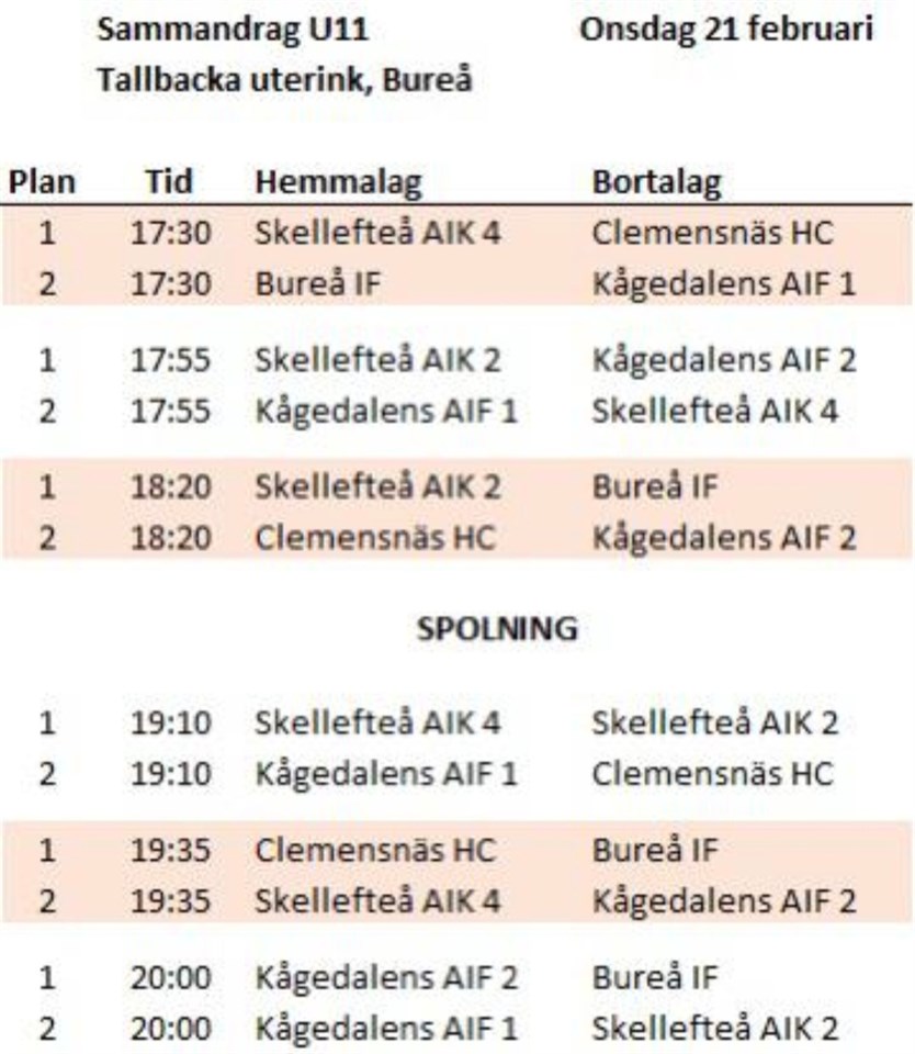 Här kommer spelschema för kvällmatcherna den 21/2. Samling i Bureå kl. 16.55 för AIK 4, och kl. 17.20 för AIK 2. Det kommer att säljas hamburgare till middag för de som vill. U13 14 feb 2024 2kommentarer
