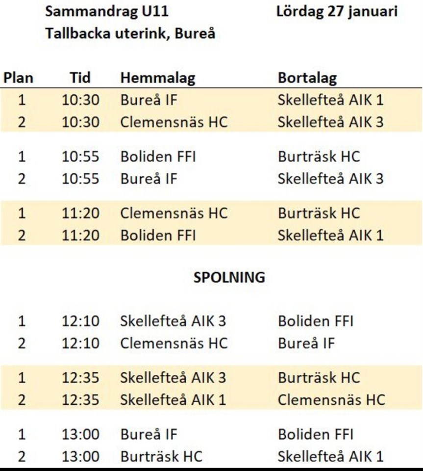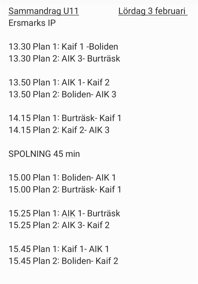 Här kommer spelschemat för lördagens matcher. U13 22 jan 2024 1kommentar