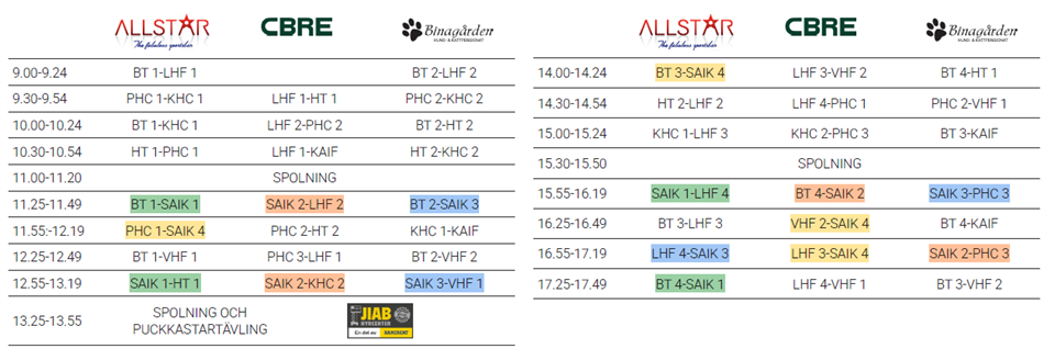 Här kommer spelschema (finns även under Dokument) och lagindelning för cupen i Luleå nu på lördag. Påminner även er som inte svarat på kallelsen att göra det.