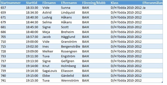 • Startlista för Baikare zontävling 15/3 Sunderbyn