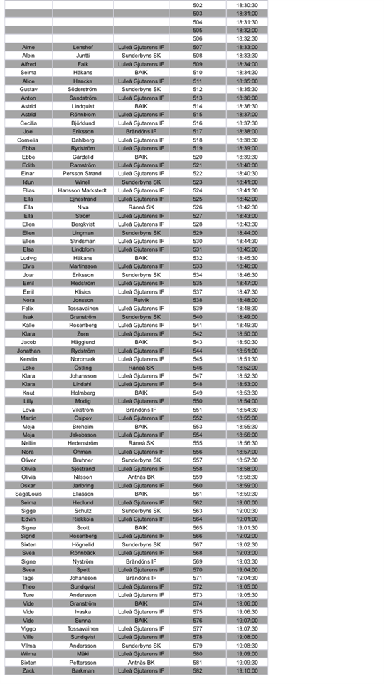 Här kommer startlistan inför torsdagens skidtävlingar i Råneå för de som anmält sig. Var på plats minst 30 min före er starttid så hämtar ni nummerlappar av oss Baikledare som samlas på lämpligt ställe nära starten. Övriga som inte deltar tränar som vanligt kl 18.00 på Bergnäsets IP! Skidor 22 jan 2018 0kommentarer