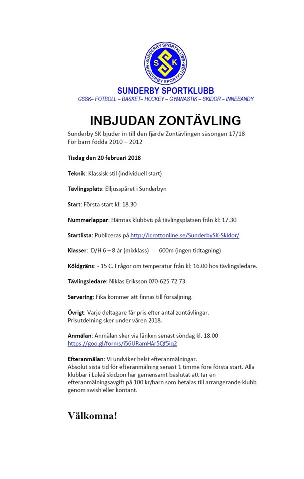 • Zontävling födda 2010-2012 i Sunderbyn tisdag 20/2.