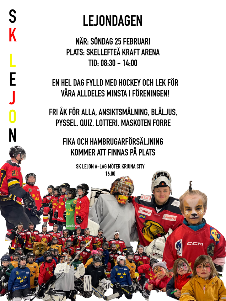 Söndag den 25/2 är det dags för den årliga Lejondagen! Vi hoppas att barnen ska få en lika bra dag som dom hade förra året. För vårat gäng är det matcher då vi kommer att ha ett U9 sammandrag och ett U10 sammandrag sedan kommer alla att vara med och spela internmatcher där även spelare från äldre lag kommer att delta. Kallelserna till matcherna kommer. Det kommer att söljas fika, hamburgare och lotteri. U11/ U12 14 feb 2024 0kommentarer