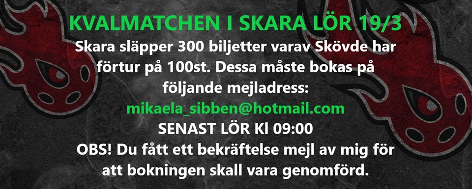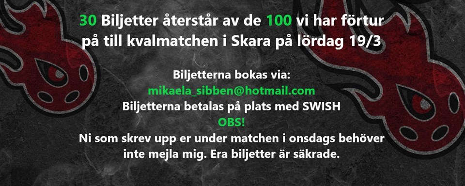 • Återstående biljetter till kvalmatch i Skara 19/3