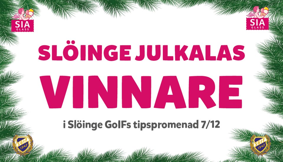 Lördagen den 7 december arrangerar vi återigen tillsammans med SIA Glass SLÖINGE JULKALAS VID SIA GLASSBUTIKEN I SLÖINGE Program (OBS ca tider): KL. 11.00 - Musikunderhållning med Eric Svensson Kl. 11.30 - Tomten kommer på besök Kl. 12.00 - Lucia med häst och vagn Kl. 13.30 - Musikunderhållning med Eric Svensson Kl. 14.30 - Tomten kommer på besök Massor av bra erbjudanden i SIA glassbutiken, barntävlingar samt flera lokala producenter på plats som erbjuder godsaker till julbordet som t ex: J&A Tunnbröd, A Kombucha, Vessige Honung, Skrea Ost, Berte Museum, Eråkers (Slöinge Kafferosteri), Alice’s kransar, Blomgård Fårfällar, Onuba Café, Backmans heta såser, Hafi och Bräutigams marsipan (smakprov inne i butiken). Missa inte heller möjligheten att träffa Lucia och klappa hennes häst. Vi i Slöinge GoIF arrangerar Tipspromenad för vuxna och barn, Godishjul, Lotteri med massor av fina priser och såklart försäljning av Bingolottos julkalendrar och Bingolotter till uppesittarkvällen den 23/12. VÄLKOMNA TILL SLÖINGE FÖR MAXAT JULMYS!