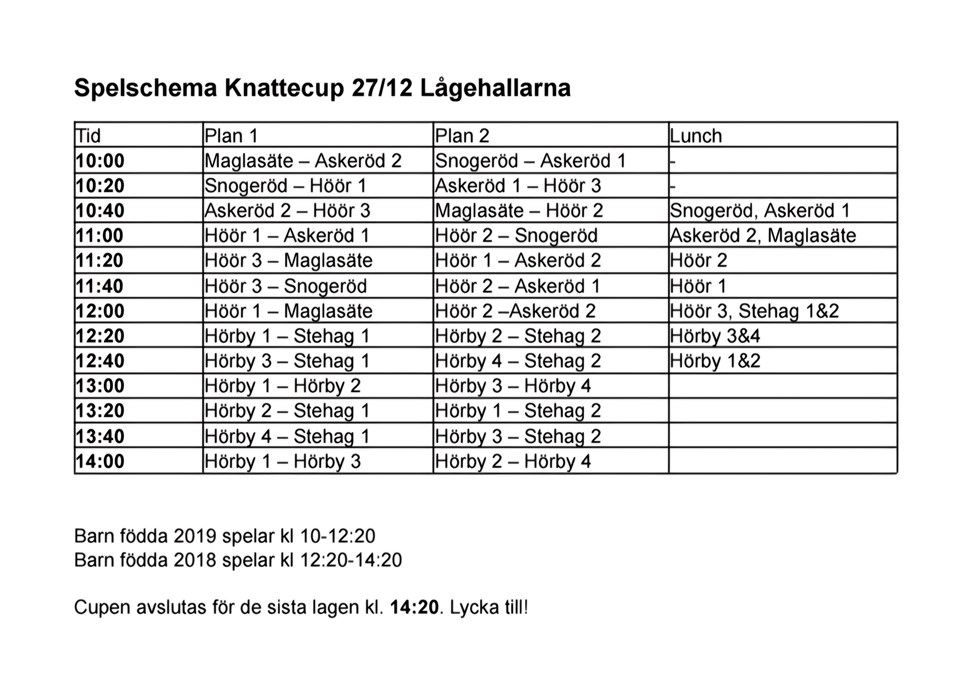 | Askecup i lågehallarna | 27 dec, 09:30 |