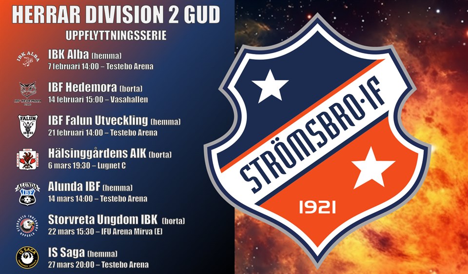 Fyll i din e-postadress för gratis uppdateringar om Strömsbro IF A-lag Herrar IB