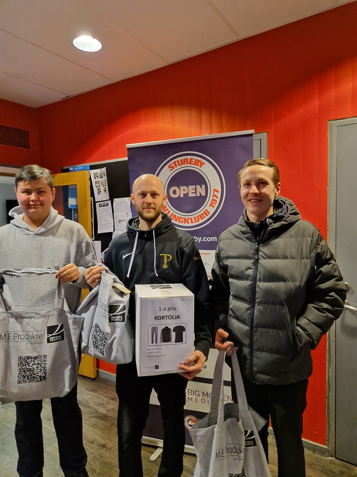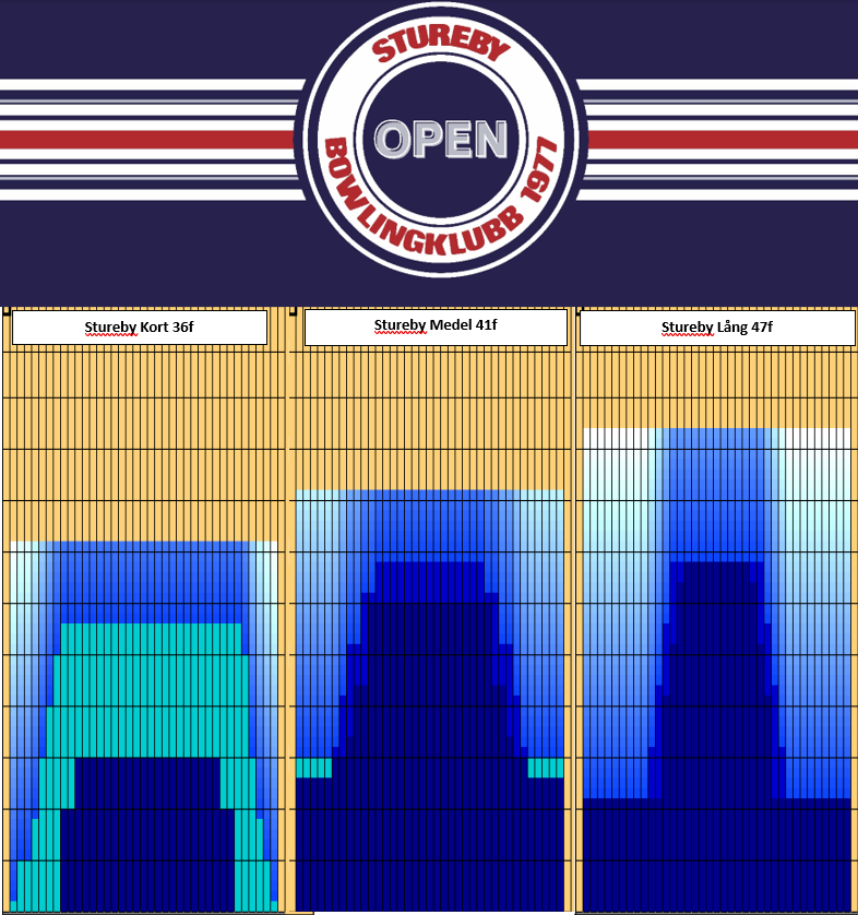 I skrivande stund är anmälan 52/60, så åtta platser kvar. www.stureby.com/sturebyopen På hemsidan ovan ser ni alla anmälda spelare, regler och erbjudanden mm Kval: 15 serier spelas (5serier/kort,mellan,lång) Final: 24 bästa spelar finalsteg 1 (kvalpoängen följer med in i finalen med en helt ny profil) Regler Prispengar Priser: 1:20000, 2:10000, 3:7000, 4:5000, 5-6:3000, 7-12:1500, 13-14: klot, 15-18: 3-klots väska Materialpriser (värde) Kortolja: 1:3665, 2:786, 3:786 Mellanolja: 1:3765, 2:786, 3:786 Långolja: 1:3690, 2:786, 3:786 Storfinal: 1:2665, 2:786, 3:786 Önskar ni boka rum på spelarhotellet Freys hotel och ta del av Stureby Open erbjudandet skall bokning ske senast nu på söndag 21 januari. Därefter kan ej rum garanteras till Open pris. Se erbjudande