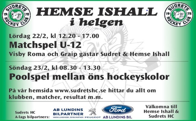 Hockey hela helgen 22-23/2 i Hemse ishall Välkomna till Hemse Ishall