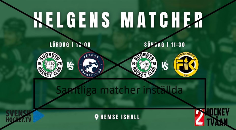 • Samtliga helgens matcher är inställda