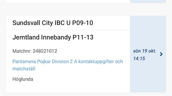 | Döma match 4v4 City P15 | 26 okt, 09:00 |