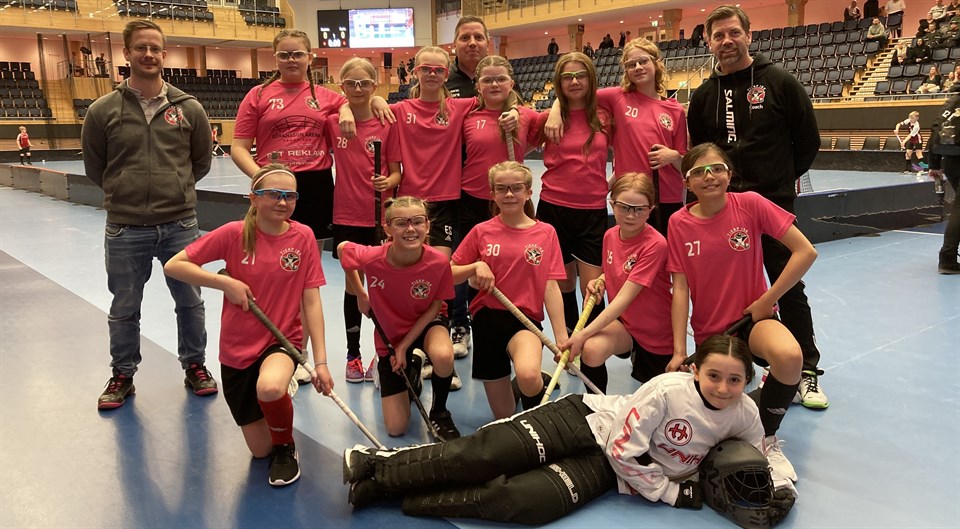 Då är säsongen slut och vi avslutar med en mycket rolig turnering i den mycket fina IFU Arena. Det är så otroligt kul att träna detta fantastiskt fina gäng. Har bara superlativ till över för hur fina dom är mot varandra, tar hand om varandra, peppar varandra, pushar varandra till att våga utmana sig själva och inte vara rädd för att göra fel. För det är något vi pratar mycket om tillsammans, att man måste våga göra fel ibland, våga testa nått nytt för att utvecklas både på plan och som individer. Vi vågar prata om när vi gör fel men att vi ska lära oss av misstagen och inte klaga på varandra, något som tjejerna verkligen tagit till sig. Ytterligare ett bevis för det när vi hade Tyra och Charlotte som klev in och gjorde sina första matcher i helgen och som de gjorde det! Frampeppade av tjejerna klev de in och gjorde kanonmatcher båda två. Nytt för i år har ju varit att vi samlas och pratar om ditt å datt innan vi går in på plan och det har varit väldigt bra tycker vi. Här har vi haft möjlighet att prata om allt möjligt som varit aktuellt utan att känna att vi tappar tid på planen. Vissa tjejer är som svampar och lyssnar med stora öron på allt vad vi säger medans andra…. lyssnar lite mindre. Även tjejerna får tid att prata. Vissa matcher har varit tuffa och de har fått tagit emot en hel den tjuvnyp, kruffar, slag med klubbor etc etc men vi är väldigt imponerade av hur de hanterar detta. Hur de fortsätter kämpa på och fortsätter ge sig in i situationer där de vet att det blir tufft utan att ”gnälla” på domare eller motståndare. Det säger en hel del om det här laget. Men som vi brukar säga ”- De andra spelar ju tufft för att det är enda sättet att försöka stoppa oss för vi är ju så himla grymma” 😊 Under säsongen har vi roterat en massa på platserna så alla ska få testa på att få spela på olika positioner vilket kan bli svårt för tjejerna att ena matchen spela back med en kompis och nästa forward med någon annan kompis men de har skött det jättebra! Allt eftersom så börjar de hitta sina favoritpositioner och sina egna styrkor som de känner sig trygga i. Nästa år kommer det förmodligen bli mindre roterande och lite mer fasta positioner…. Men vi får se. Cupen var jätterolig tycker vi och kul för tjejerna att hänga ihop tillsamman en hel dag. Höjdpunkterna var bl.a. matchen mot Sirius i mäktiga A-hallen och avslutningsmatchen mot Alunda Avslutningen mot Alunda var sista matchen för i år och tjejerna var så sjukt taggade att få möta dom igen. Vi hade så roliga matcher mot dom ifjol men var enda matchen vi åkte på lite större förlust i år. Efter några minuters spel så såg det ut att bli en till storförlust där bollarna ven mot eget mål men återigen så visade de prov på sin kämparandra och jobbade sig verkligen in i matchen och vi vann till slut med 3-0. Blev en lång sista nyhet men kunde fortsätta med mycket mer men det mesta vet ni redan, det är en härlig uppslutning från er föräldrar som är med och kollar på nästan alla matcher. Tjejerna vill verkligen visa upp för er vad de kan och ert stöd betyder mycket för dom. Men nu avrundar vi denna nyhet och denna säsong och hoppas se er alla till hösten igen då vi har en hel del nya roligheter på gång! Men det spar vi till hösten ;) //Tomas, Richard & Fredrik