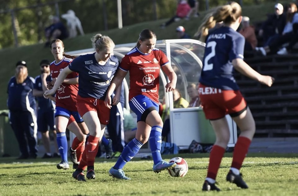 En solig kväll på Solviksvallen!⚽ Vi åkte över finnskogen till Arvika igår kväll för en tuff match mot ett lag som har satsat för att vinna serien. Vi startar på tå vilket ger utdelning då Sanna fick näta efter 4 min i första fotbollsmatchen på ett antal år! Vi spelar relativt jämt under en period men Arvika sätter sedan 1-1 och 2-1 tätt efter varandra. Vi fortsätter trycka på med det vi kan och Paloma är direkt på utanför straffområdet och tar tag i bollen och sätter den, 2-2. Precis innan domaren ska blåsa av för halvlek får Arvika en hörna som kliniskt nickas in, 3-2. Vi pratar i halvlek på att fortsätta kämpa och knyta näven. Vi går ut i andra och håller ett högt tryck i en längre period och får en hel del chanser till läge men som tyvärr inte sitter. Arvika får en frispark och sätter den på mål, ett hårt skott som går in, 4-2. Resterande tid av matchen får vi kämpa för att hålla tätt och det blir en hel del rensning och långbollar. Ett spel som varken vi eller Arvika vill spela, men heta känslor och tuff fajt summerar sista delen av andra halvlek. Första förlusten för iår och vi tar med oss en del saker som kan finslipas och jobbas på, men absolut en godkänd insats där vi krigar matchen igenom. Vi säger även grattis till Hanna som välförtjänt tilldelas matchens lirare! Foto: Arvika Nyheter