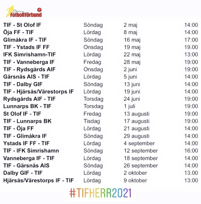 Det blev storseger i första matchen på mycket länge och riktigt skoj att se att återväxten ser spännande ut! Nya tag imorgon, träning väntar då. Öja FF - TIF 1-7 (0-2) 0-1 Gustav Jönsson 23’ 0-2 Erik Ekholm 37’ 0-3 Max Jansson 50’ 0-4 Leo Björklund 54’ 0-5 Leo Björklund 59’ 1-5 64’ (straff) 1-6 Qader Akbari 86’ 1-7 Tage Stålhammar 85’ #tifherr2021 #österlensänglar