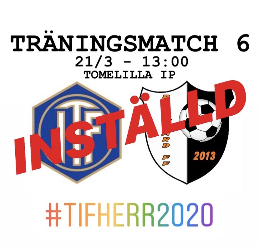 A-lagets match som skulle spelats nu på lördag är inställd. Fotboll herr 25 mar 2020