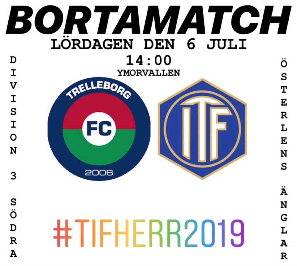 Då har det blivit dags för sista matchen innan sommaruppehållet och vi möter laget vi hade i premiären, nämligen FC Trelleborg på bortaplan och vi vill verkligen ha med oss tre poäng i bagaget när vi lämnar Ymorvallen på lördag. Som ni säkert minns i våras, så slutade den matchen 0-0 efter en stundtals briljant första halvlek av oss. Vi hoppas vi får se många TIF:are på lördag i Trelleborg!! Ses💙 31 André Jeppsson 21 Filip Malmqvist 2 Johan Nilsson 3 Anton Olofsson 4 Jakob Wetterberg 5 Jesper Larsson 6 Anders Nilsson 7 Christoffer Persson 8 Hampus Nilsson 9 Ahmed Zukanovic 10 Joakim Persson 11 Erik Ekholm 12 Johannes Persson 13 Olof Nilsson 14 Hugo Hellichius 15 Linus Göransson 16 Adam Jönsson 18 Kasper Svensson
