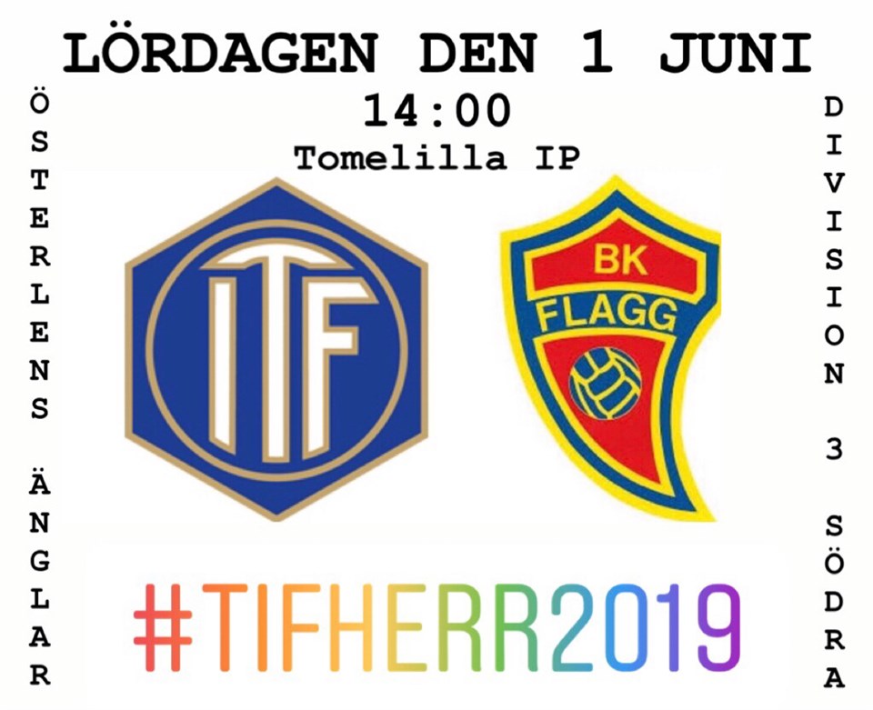 Ny hemmamatch för Tomelilla IF och för motståndet stod BK Flagg från Malmö. Första halvlek präglades av försiktighet från båda lagen, där publiken inte fick se särskilt många målchanser åt något håll. Efterhand så tog hemmapojkarna tag i taktpinnen och var det laget som var närmast någon målchans värd namnet. 0-0 i halvtid var fullt rättvist, och i korvkön hördes rop på lite mer energi från de randiga eleganterna. När så andra akten drog igång denna soldränkta lördageftermiddag, var förväntningarna höga på hemmapojkarna. Det skapades mer framåt och TIF var det laget som ägde mest av bollinnehavet och även hotade mer och mer. Hemmalaget gjorde lite förändringar efter en timmes spel, och det var extra krydda framåt som banade vägen för ledningsmålet. 1-0 såg dagens ljus fem minuter senare, då Anton Olofsson skickade in en hörna som gick rakt in i nätmaskerna. Detta mål fick även bortaledningen att chansa lite mer framåt och de fick lite mer tryck framåt, dock ska nämnas att TIF hade ett par riktigt bra möjligheter att stänga matchen med ett 2-0 mål. Tyvärr så lyckas man inte få bolluslingen över mållinjen utan bortalaget vinner en boll på mittplan och ställer om snabbt och lyckas med en drömträff överlista hemma keepern, och slutresultatet 1-1 fullbordas i matchminut 82. Bäst i hemmalaget var yrvädret Johannes Persson, som gång på gång hotade framåt och jobbade starkt även i defensiven. Nu väntar årets tuffaste drabbning nämligen Limhamn borta, som har en tabellrad som visar att de är seriens bästa lag (8 segrar på 8 försök och endast 1 insläppt mål) Kämpa på randigt. // Mr Referat