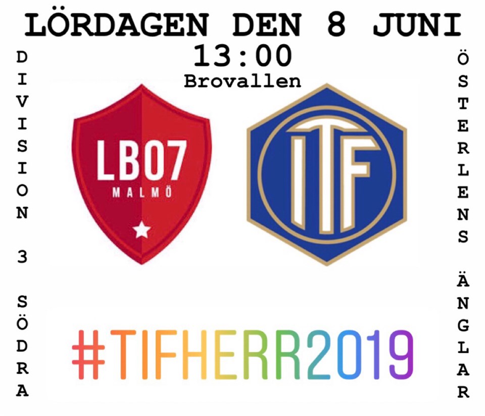 På lördag väntar årets tuffaste bortamatch då vi gästar LB 07 på Brovallen. De har starta serien minst sagt övertygande med åtta raka vinster och är storfavoriter till att vinna hela serien, så denna utmaning ser vi verkligen framemot. Ingen trodde att vi skulle ta poäng där i fjor, men då tog vi en poäng. Vi kommer att ge allt på lördag och lite till! Truppen: 21 Filip Malmqvist 31 André Jeppson 2 Johan Nilsson 3 Anton Olofsson 4 Alexander Larsson 6 Anders Nilsson 7 Christoffer Persson 8 Hampus Nilsson 9 Ahmed Zukanovic 11 Erik Ekholm 12 Johannes Persson 13 Olof Nilsson 14 Hugo Hellichius 15 Linus Göransson 16 Adam Jönsson 18 Kasper Svensson 20 Felix Mattsson 22 Jakob Wetterberg (K) Resultat 2018 TIF-LB 07 0-1 LB 07-TIF 1-1