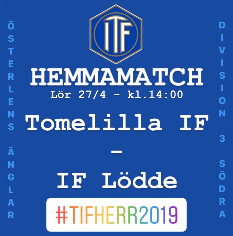 På lördag är det dags att bekänna färg för då möter vi IF Lödde som börjat serien strålande med två raka segrar och 9-2 i målkvot. En uppgift som vi ser framemot massor och vi hoppas ni kommer ut på IP och stöttar fram pågarna till säsongens första trepoängare. Truppen mot IF Lödde: 31 André Jeppsson 21 Filip Malmqvist 2 Johan Nilsson 3 Anton Olofsson 4 Alexander Larsson 5 Tobias Andersson 6 Anders Nilsson 9 Ahmed Zukanovic 10 Joakim Persson 12 Johannes Persson 14 Hugo Hellichius 15 Linus Göransson 16 Adam Jönsson 18 Alisina Hussein 19 Jesper Larsson 20 Max Sterner 22 Jakob Wetterberg 23 Felix Mattsson Välkomna till IP💙 Resultat 2018 TIF - IF Lödde 0-3 IF Lödde - TIF 1-1