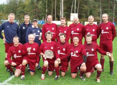 Här håller en glad och stolt Nicklas Larsson vandringspriset. Torp GoIF Orustmästare 2010, P35.
